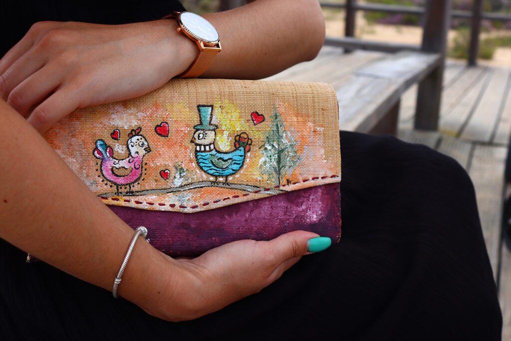 Her range is extensive from fashion accessories to ceramics, to textiles and most recently, even homemade soaps. Rita enjoys making her range of bespoke, hand-painted fashion accessories from Portuguese-sourced woven handmade baskets. There are two types of baskets with long or short handles that the artist receives in their natural state and paints either custom designs for her clients or from her own range. Each basket is unique, even the ones from her image bank as they are hand-painted, and it would be almost impossible to make an identical piece. “I’ve had some enjoyable commissions so far; the latest one was a quirky David Bowie piece, that was a lot of fun to do.”