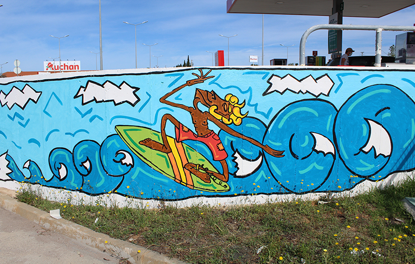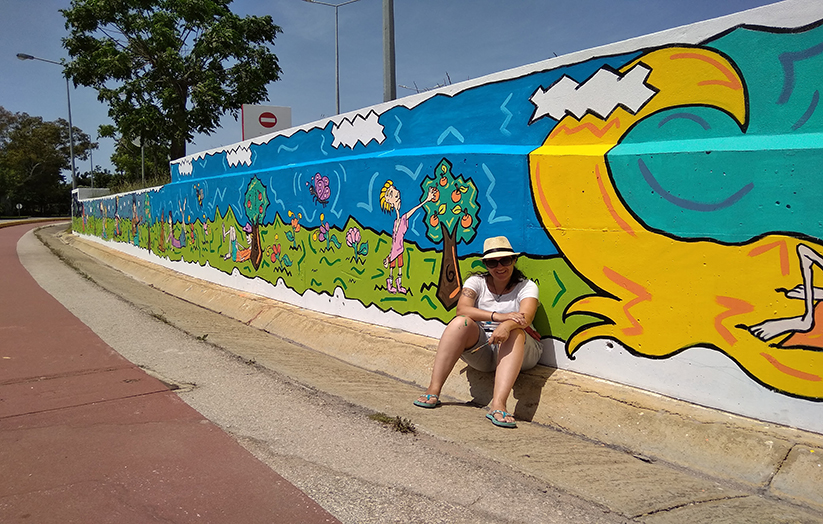 A white wall near Lagoa’s Auchan supermarket has been transformed into a head-turning work of art by local artist and art teacher Ana Nobre, who has filled it with colourful illustrations of some of Algarve’s most iconic sceneries.