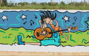 From a surfer enjoying the Algarve’s waves to a couple dancing under the region’s starry sky, the mural showcases all the “wonderful things that the Algarve has to offer, such as its climate and landscapes”, said Ana. The mural was completed in May, after over a week of daily five-hour painting sessions. It’s the second mural that the artist has painted in Lagoa, around a year after she also gave a new vibrant life to a wall along the nearby Carlos Boto fitness circuit.