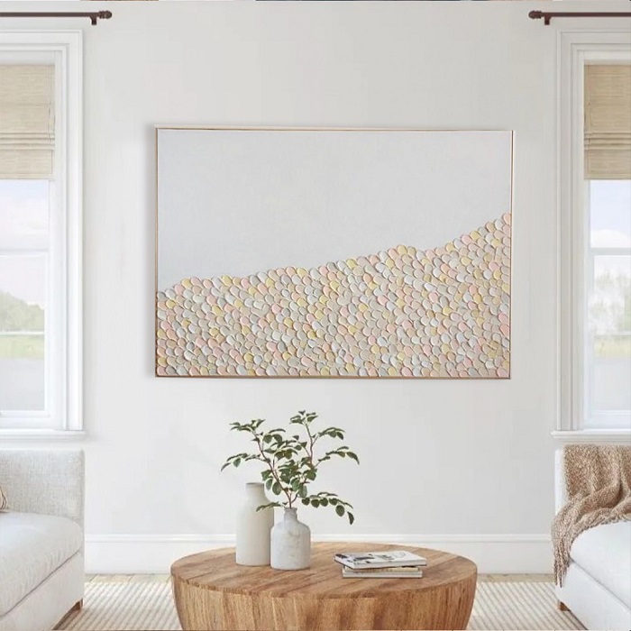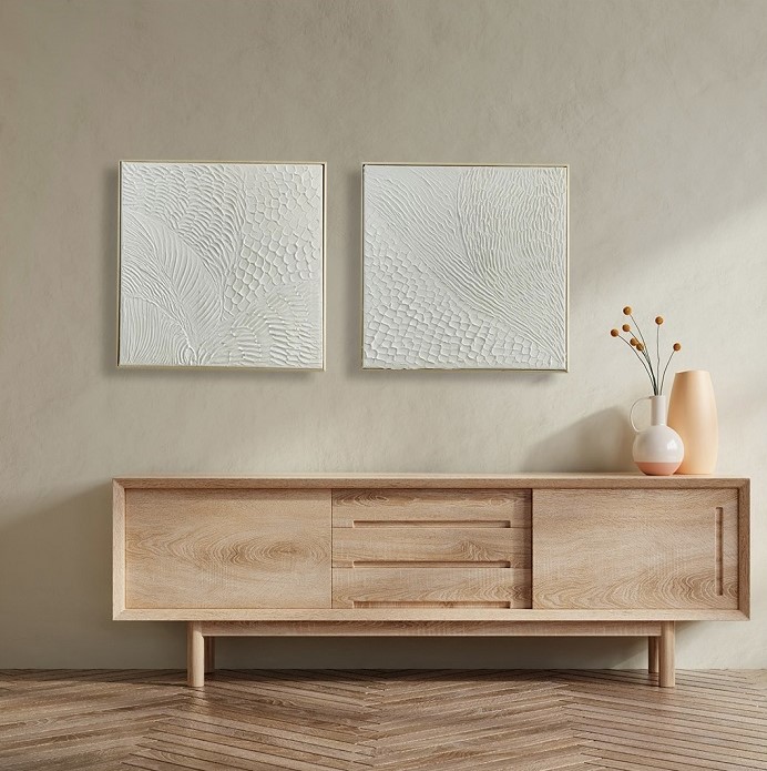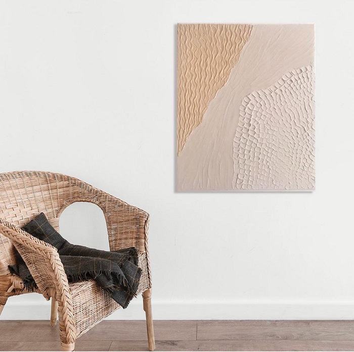 Currently, Sandra receives orders for paintings of all sizes and colours, but she prefers to paint in neutral colours because she believes they convey “serenity, peace and comfort”, and she identifies them with Nordic decor.