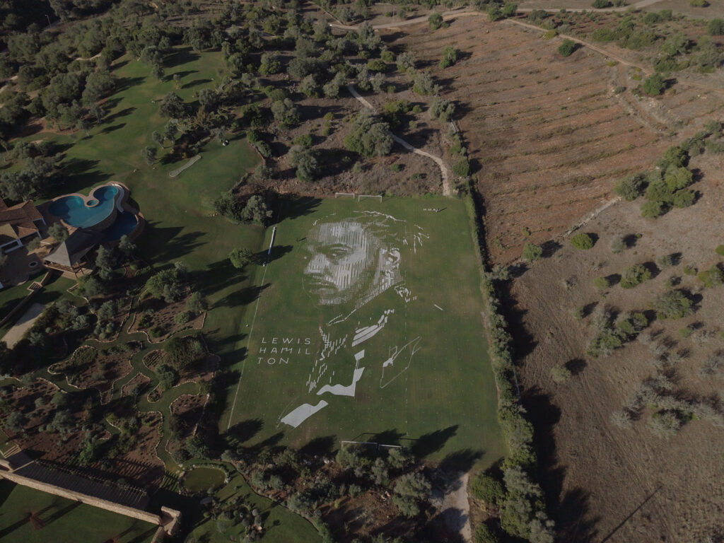 Formula 1 icon Lewis Hamilton was “totally blown away” by a giant painting in his honour that was painted onto a private football pitch in Mexilhoeira Grande, Portimão, by Algarve street artist HUARIU.