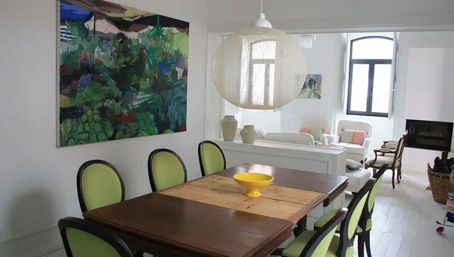 The two-storey building, functioning as an art gallery on the ground floor, has two charming apartments on the first floor, rented individually as holiday rentals (Alojamento Local, or AL). Decorated with her paintings and artworks, both aim to convey a sense of well-being and tranquillity.
