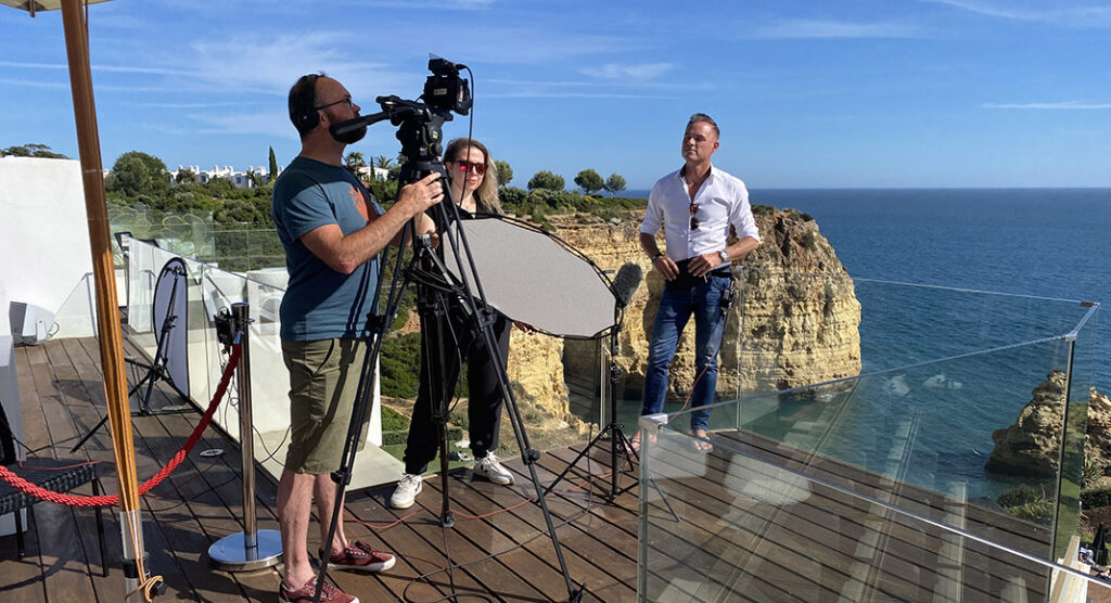 The Algarve’s charming village of Carvoeiro was the main setting for a three-part news report this week by the UK’s Channel 5 News about the return of British tourists to Portugal.