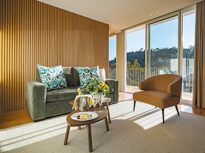 Most of the buildings in the village centre are owned by the foundation, which operates the thermal baths and serve as accommodation for guests. There are also restaurants, a café and a handicrafts shop, as well as manicured gardens with lush green lawns. It’s not just the former aristocratic residences resembling small palaces that attract our attention. The small details are just as fascinating, such as the retro street lighting, stone-framed windows or even the cute dwellings of Pernalta (“longleg”) the tom-cat.
